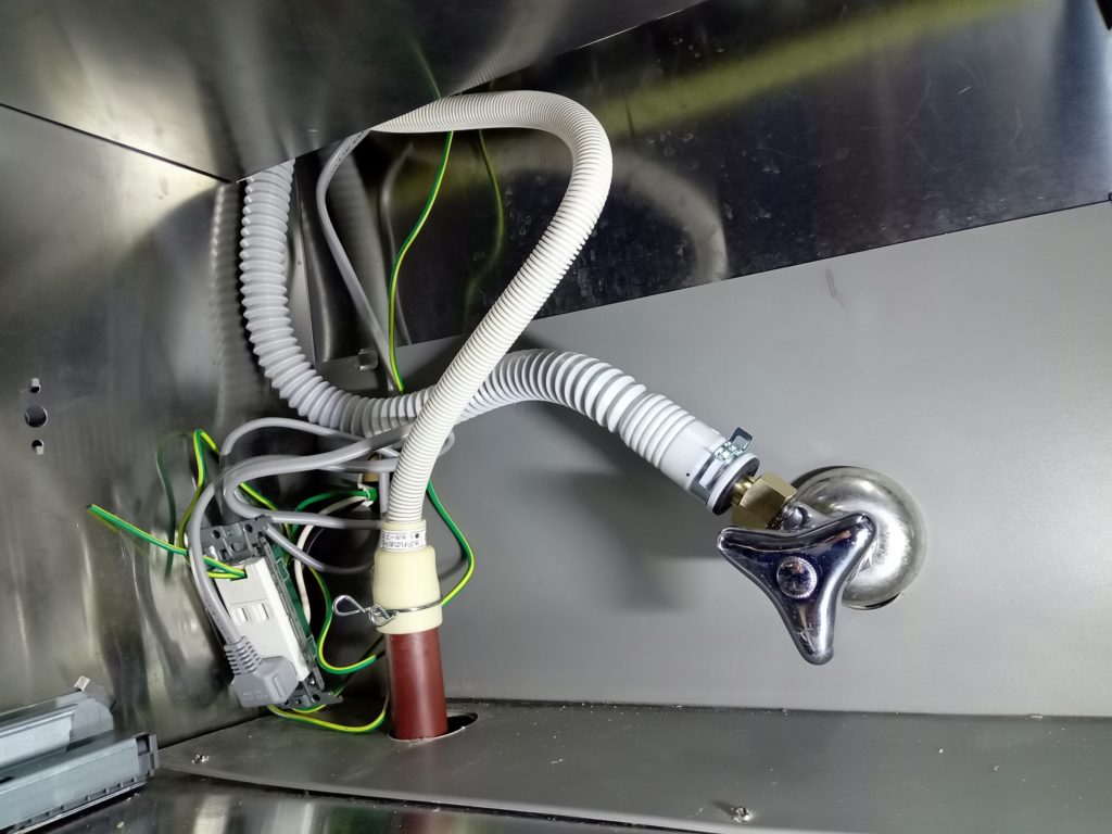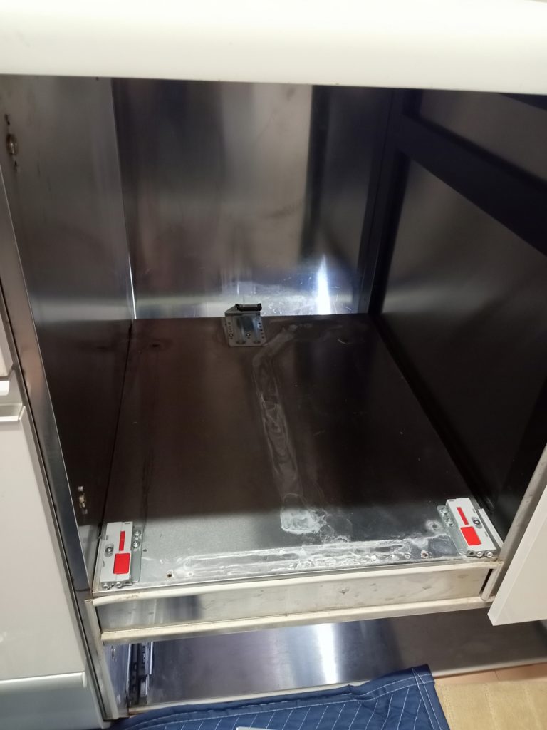 12~13年ほど前の食器洗い乾燥機をご使用になっており、使用するたびに下から水が漏れていたため今回を機に買い替えをしていただきました。