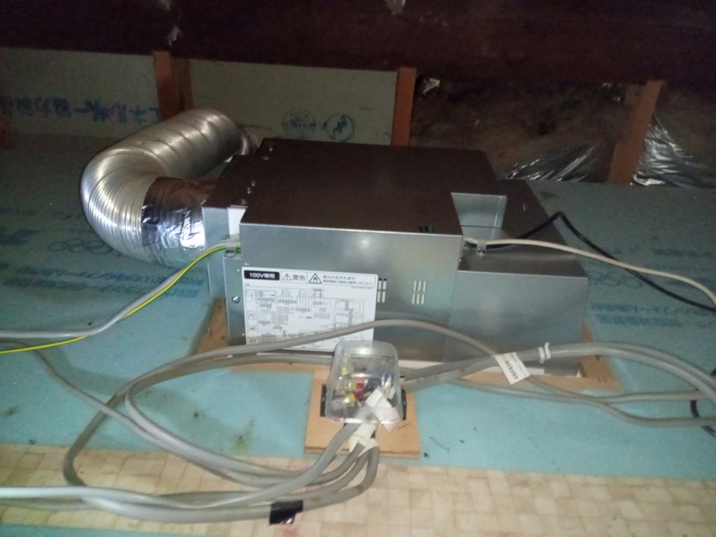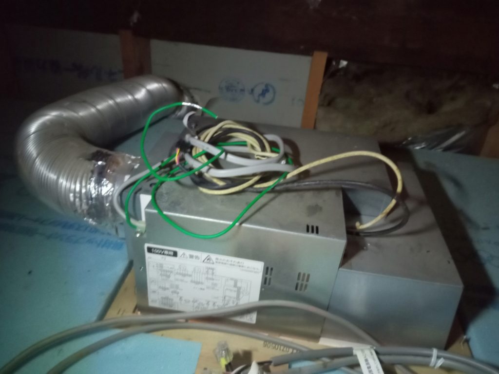 掃除した後は新しい機器を同じように取り付け、屋根裏にて結線工事やパイプの取り付け工事を行い完成です。