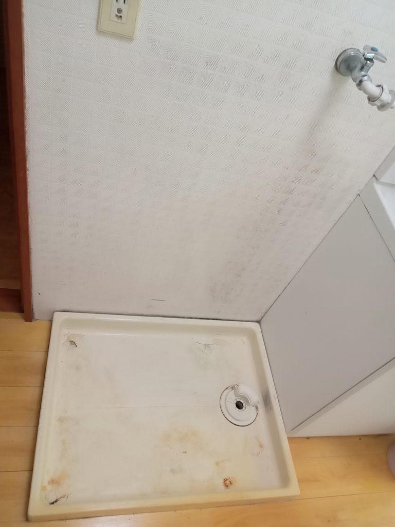今まで使っていた洗濯機を動かした後は、洗濯板の掃除をしてキレイにしてから新しい洗濯機を納めます。